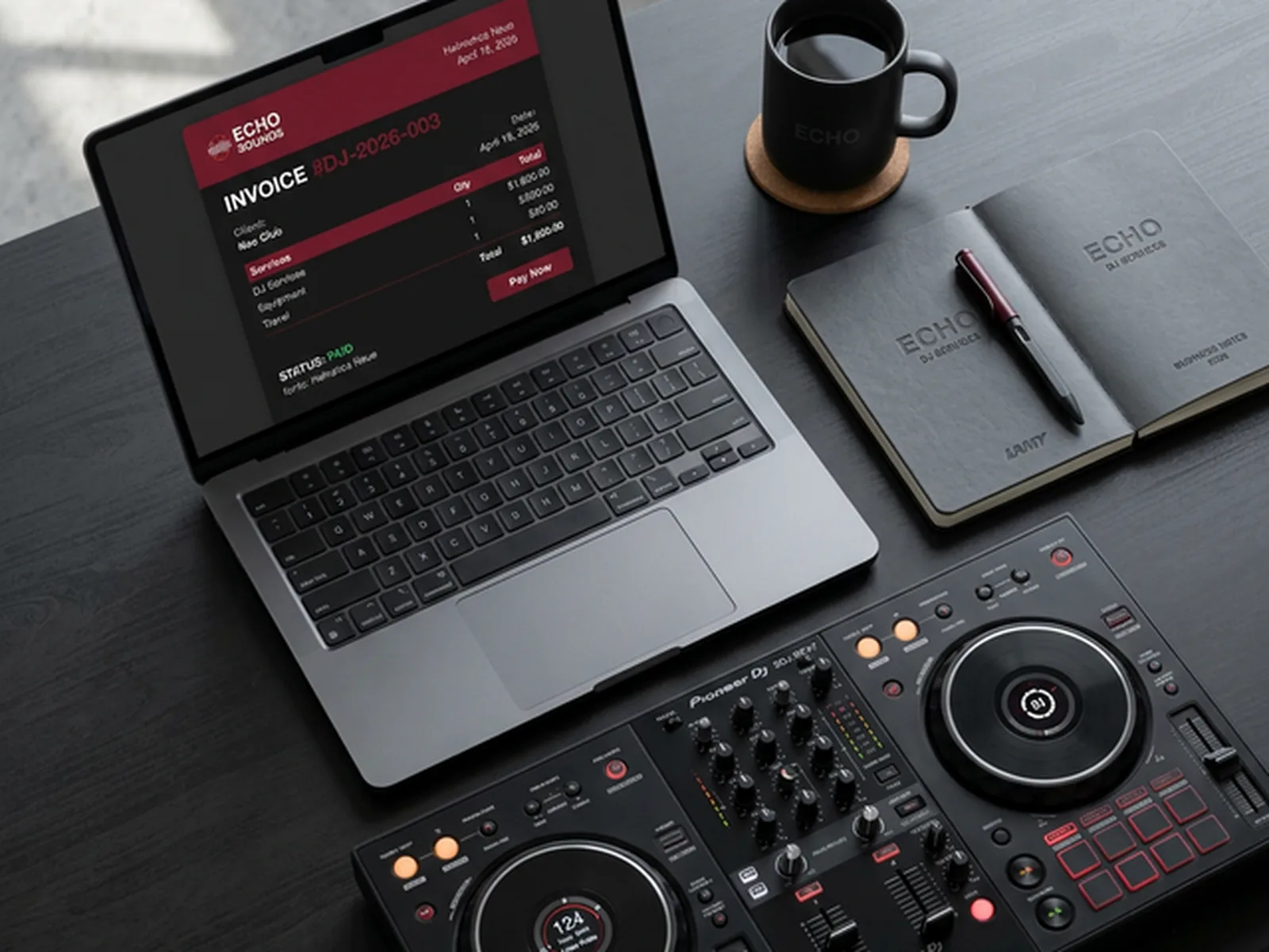 Generate professional invoices for DJ gigs in seconds. PDF export, itemised services, your branding.